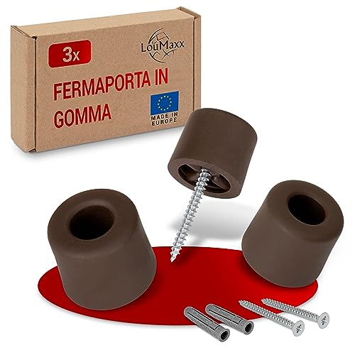 Contenuto della confezione: Set di 3 fermaporta in gomma da avvitare con tasselli e viti;