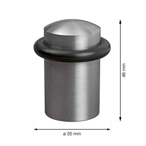 ✔️ DIMENSIONI: Fermaporta avvitabile Ø 35 mm/altezza: 46 mm Base fermaporta rotonda, set di 2 pezzi. COLORE: Design acciaio inox, tasselli e viti inclusi