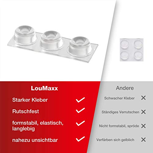 ✔️TOP QUALITÀ: I tamponi di protezione adesivi LouMaxx sono fatti di una plastica permanentemente elastica, che assicura le migliori proprietà antiurto. Sono semplici, inodori, trasparenti e offrono così una soluzione efficace e funzionale per proteggere i mobili e i pavimenti da urti e graffi. Lo strato adesivo superiore ha una tenuta extra forte.