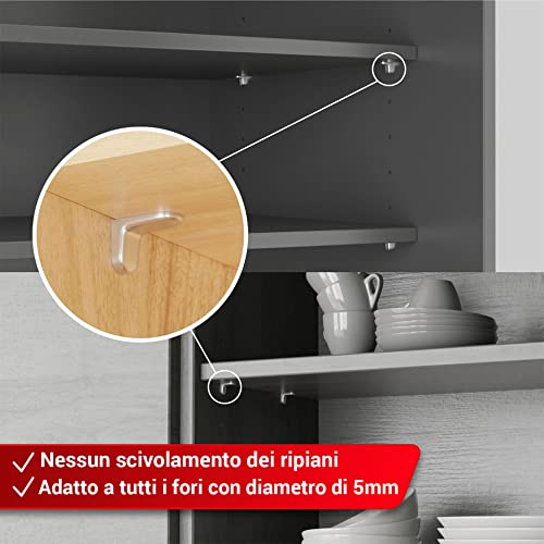 Tenuta sicura: i supporti LouMaxx offrono una presa sicura per i vostri ripiani anche con carichi elevati. I due perni del supporto impediscono lo scivolamento dei ripiani e fissano i supporti in modo sicuro alle pareti dell'armadio. La connessione fissa tra ripiani e pareti garantisce una maggiore stabilità. Il supporto per armadio può quindi essere utilizzato particolarmente bene in armadi da cucina o libreria.