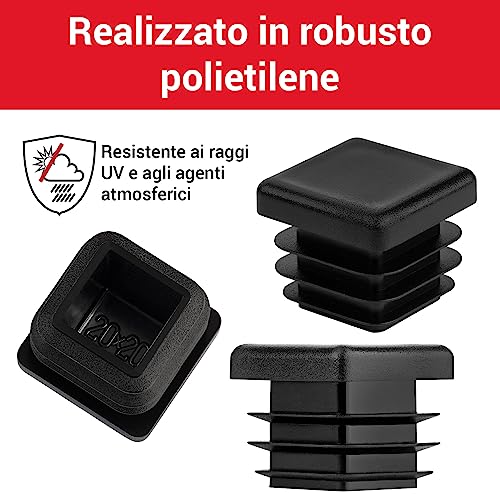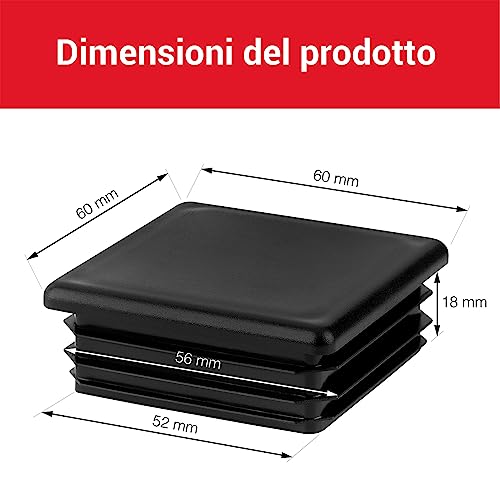 ✔️ PROTEZIONE PERFETTA: i tappi quadrati da 60 x 60 mm sono ideali anche come piedini per mobili per sedie tubolari in acciaio, le cui gambe sono ad angolo di 90° rispetto al pavimento. I tappi per tubi permettono di scivolare facilmente i mobili da giardino e proteggono pavimenti e piedini dai graffi;