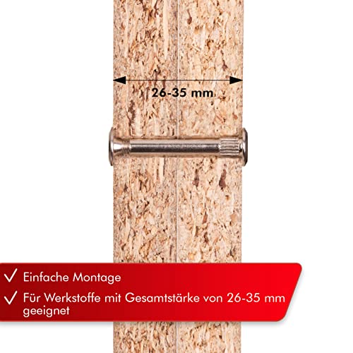 LouMaxx Viti di Collegamento M6 26-35mm | Set di 12 Giunzioni Per Mobili in Acciaio Nichelato | Viti Di Fissaggio Mobili M6| Connettori Per Mobili per mantenere unite tutte le parti del mobile