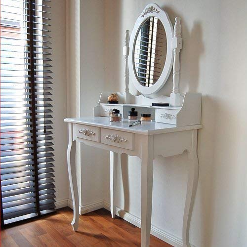 Sala zona vanità tavolo da toeletta toilette Toilette toilette GLORIA bianco romantico Rose ornamenti specchio ovale girevole-9979
