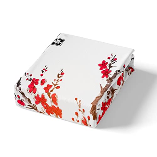 Loussiesd Giapponese Stile Ukiyoe Tema Lenzuola Fiori di Ciliegio Consolatore Set Adulto Giapponese Rosso Floreale Foglio Set Acquerello Rami Fogli 4 Pz Biancheria Da Letto Matrimoni