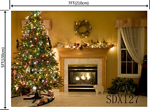 LOVE-BABY Vinile Fondali 7x5ft / 210x150cm Albero di Natale con palle e firplace con calze autoreggenti Fondali Photography Interno Foto Bonus per Studio / partito / decorazioni