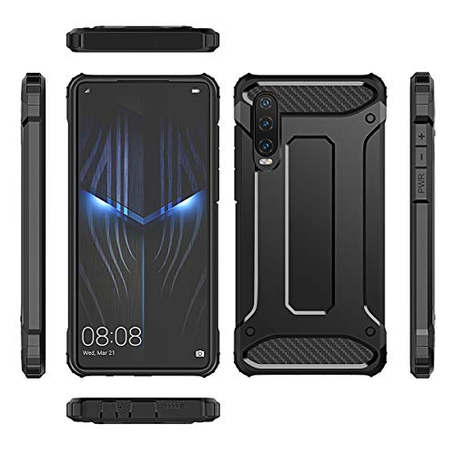 WE LOVE CASE Cover per Huawei P30 Custodia Robusto et Resistente Protezione Doppio Strato Hard PC + Soft Silicone Bumper Armatura Sottile AntiGraffio Antiurto Protettiva Case per Huawei P30 - Nero