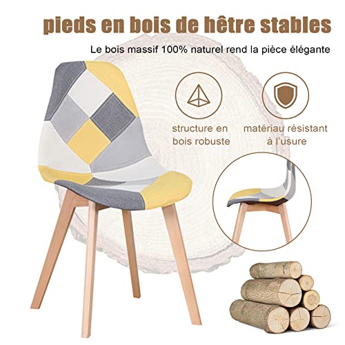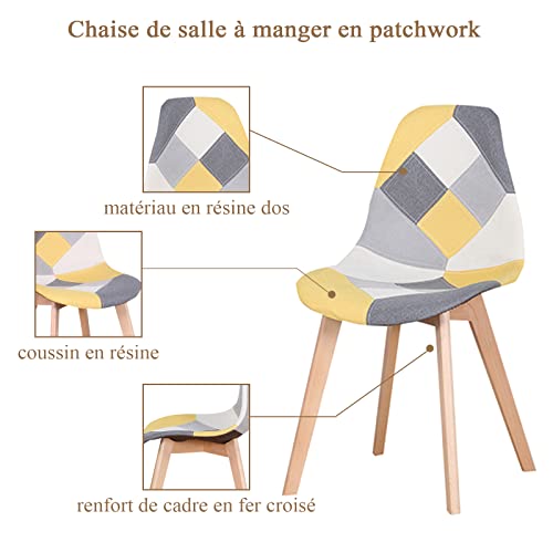I LOVE FACE 4 Sedie Da Pranzo Patchwork, Sedie Da Cucina In Stile Scandinavo Con Gambe In Legno Massello, Adatte Per Cucina, Sala Da Pranzo E Soggiorno (Giallo)