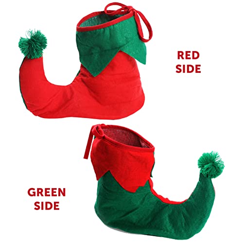 I LOVE FANCY DRESS Scarpe da elfo - Stivali da elfo rossi e verdi con dita arricciate imbottite - Accessorio per scarpe da elfo di Babbo Natale piccolo aiutante elfi copre