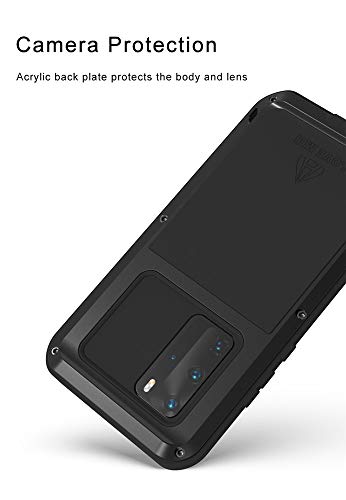 LOVE MEI Huawei P40 PRO Custodia, Alluminio Metallo+Vetro Temperato Antiurto Anti-Goccia Anti-Neve Antipolvere Anti Scivolo Astuccio Cassa Robusto Resistente, per Huawei P40 PRO (P40 PRO, Nero)