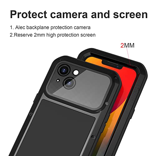 Love Mei per iPhone 14 Custodia, Heavy Duty Antiurto Antineve Impermeabile Antipolvere in Alluminio Metallo Full Body Protettiva Cover con Vetro Temperato per iPhone 14 (Nero)