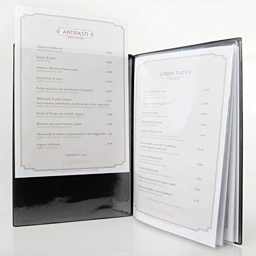 Fogli - Porta menù ristorante ideale per fogli interni A4 da 21 x 29.7 cm.