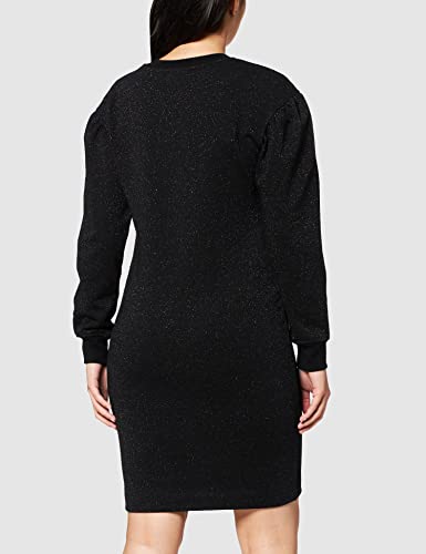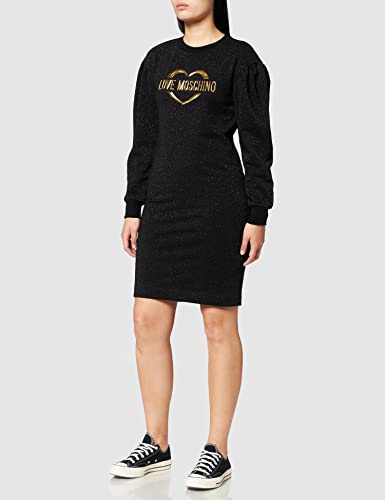 Love Moschino Abito a Maniche Lunghe in Pile di Cotone Lurex Dress, Nero, 54 Donna