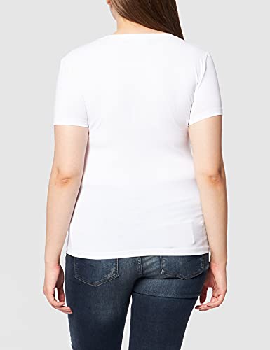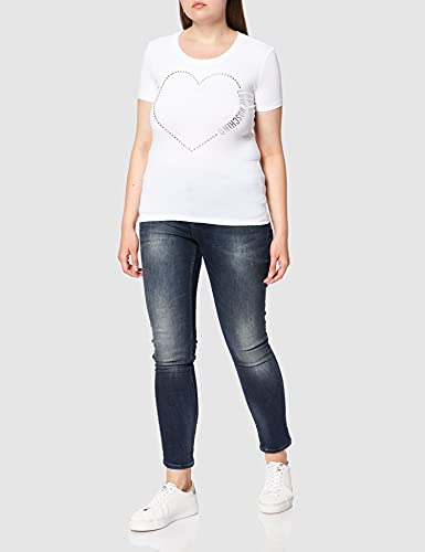 Love Moschino Fitted Short Sleeved t-Shirt Hue Rhinestone Heart with Shiny Print on Chest, Bianco, 44 Donna