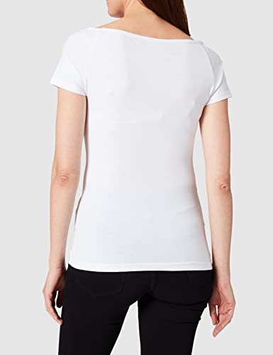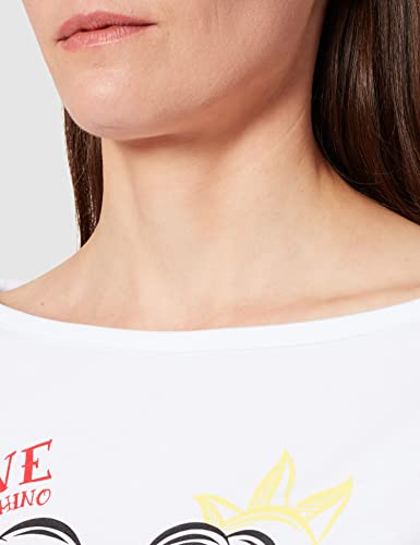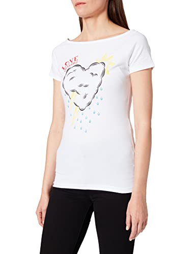 Love Moschino Jersey T-Shirt_Bardot Neckline_Weather-Themed Heart And Logo, Bianco, 46 Donna