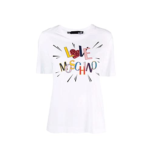 Love Moschino Maglietta a Maniche Corte con Stampa Multicolore T-Shirt, Bianco, 50 Donna
