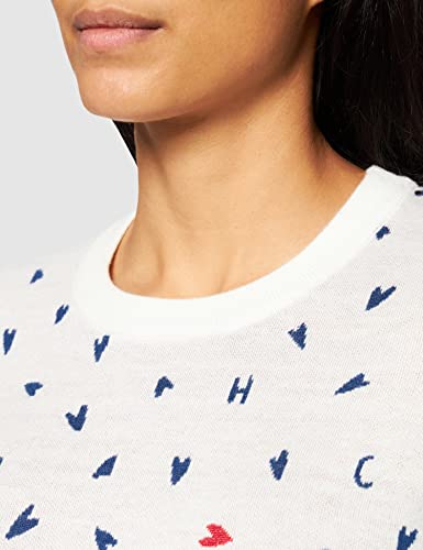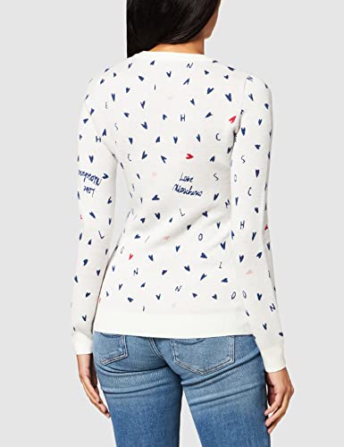 Love Moschino Micro Cuori Allover Maglione a Maniche Lunghe Rotondo con Collo, F.BCO Scri.Nero, 44 Donna