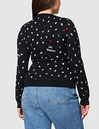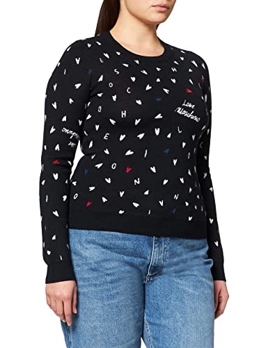 Love Moschino Micro Cuori Allover Maglione a Maniche Lunghe Rotondo con Collo, F.Nero-scri.BCO, 50 Donna