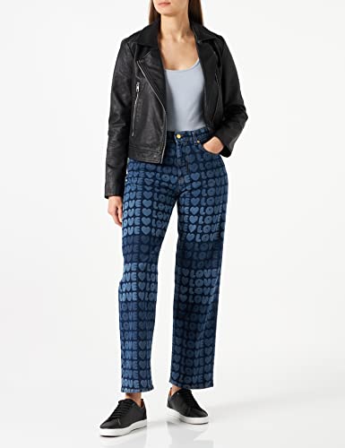Love Moschino Pantaloni a 5 Tasche con Logo in Pelle Jeans, Zztrv094, W26 Donna