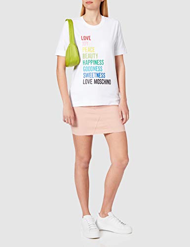 Love Moschino Regular-Fit T-Shirt Short-Sleeves Personalised with Multicolor Words And institutional Logo Print, Optical White, 42 Donna