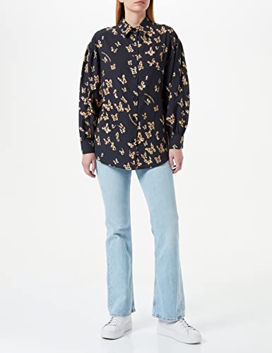 Love Moschino Shirt Printed Allover Animalier Butterflies Camicia, FARFALL.FO.Nero, 44 Donna