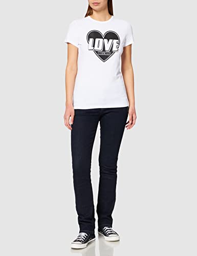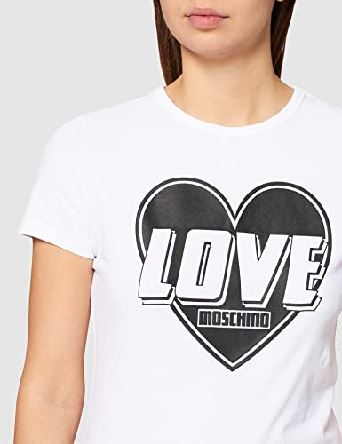Love Moschino Short Sleeve Jersey Stretch T-Shirt_Heart Print & Logo Racing, Bianco (Optical White A00), 42 Donna