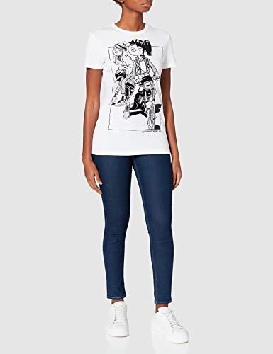 Love Moschino Short-Sleeved t-Shirt with Dolls Print, Bianco, 46 Donna