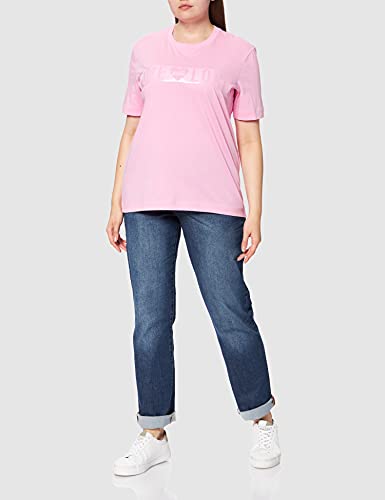 Love Moschino Short Sleeved t-Shirt with Shiny Printed Logo, Reminiscent of Tape Applique from The Collection, Colore: Rosa, 44 Donna