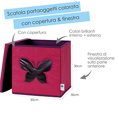 LOVE IT STORE IT - Cubo Portaoggetti Con Coperchio - Tessuto Ultra Resistente - Pieghevole - Molto Stabile - Per Cameretta Bambini - Compatibile Kallax - 30x30x30cm - Rosa Con Disegno Di Farfalla
