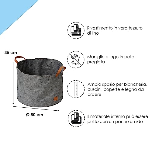VERSATILE: Con le sue dimensioni di 50x50x35 cm, il cesto rotondo offre molto spazio per legna da ardere, giocattoli, coperte e altro ancora. Il cesto rotondo può essere utilizzato come cesto per il bucato, per i giocattoli o come cesto portaoggetti.