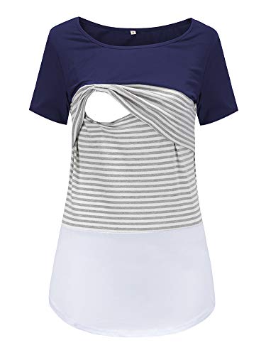 Love2Mi - Top da donna per allattamento premaman a maniche lunghe a righe blu navy S