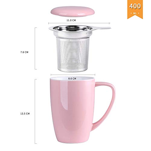 LOVECASA Tazza da tè con Infusore Acciaio Inox in Ceramica Porcellana, Filtri e Colini da tè, Filtro Infusori per tè, Set da Tè Caffè Mugs per una persona, 450ml, Rosa