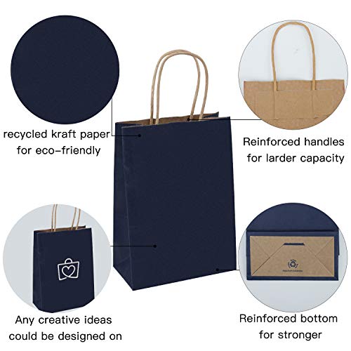 Loveinside Sacchetti Di Carta 15X8X21 cm Piccoli Sacchetti Regalo Kraft Navy Bulk Con Manici Per Bomboniere Compleanno Festa 25 Pezzi/Set