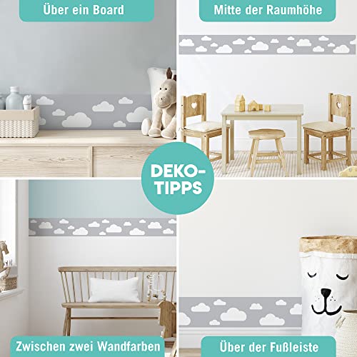 Lovely label, bordo autoadesivo, 450 x 11,5 cm, con motivo di nuvole, grigio