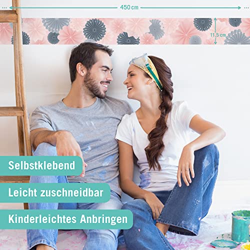 Lovely label Pompom - Rosette - albicocca/grigio - bordo autoadesivo 450 x 11,5 cm - tatuaggio murale - bordo per carta da parati