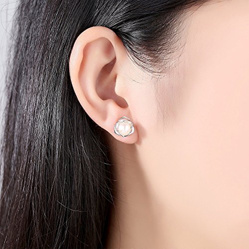 Lovely" rosa: argento Sterling 925 lucidato orecchini con perle di acqua dolce 7 mm e argento-placcato-base, colore: White Gold, cod. UK_B07CHBRS8G