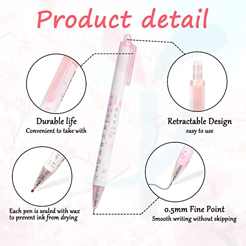 Lovely Sakura - Penna a inchiostro gel, 6 penne a inchiostro gel nero da 0,5 mm, penna a sfera extra fine, per ufficio e scuola, colore: Sakura