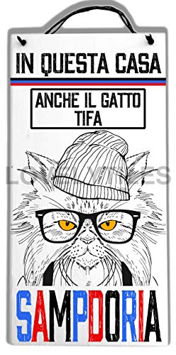 LOVELYTILES Sampdoria Tifoso Targa Legno in Questa CASA Anche Il Gatto Tifa Idea Regalo Cartello (20X40)