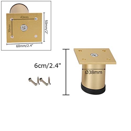 LOVEM 4 Piedini per Mobili Oro Gambe per Mobili Regolabili 6-40 cm Gambe Tavolo Alluminio | Finitura Anodizzato Zampe per Divani Rotondo piede letto Piedini Credenza, Ø38mm, Viti inclusi (6cm)