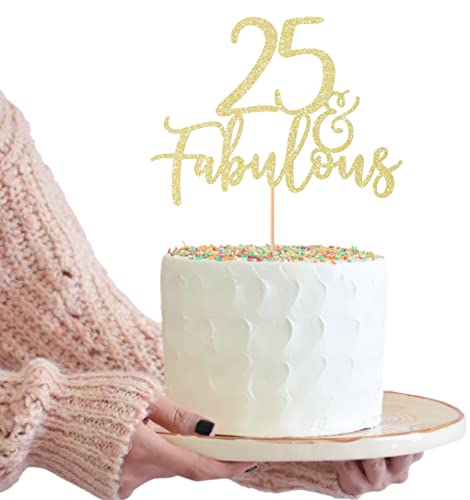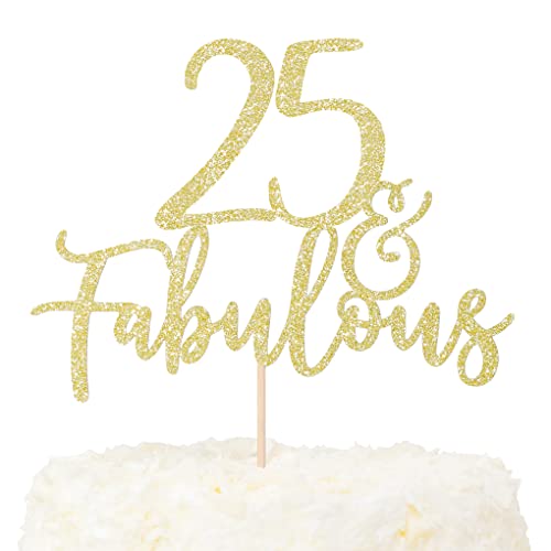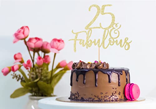 LOVENJOY 25 e Favoloso Topper Torta Compleanno Oro Glitterato 25th Happy Birthday per Decorazioni Torta Compleanno