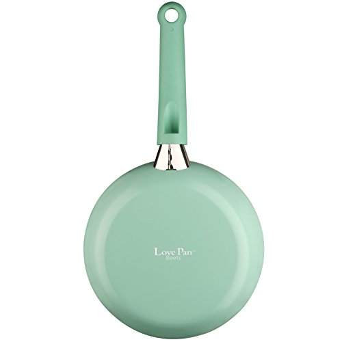 Lovepan Beets Set di 12-pezzi pentole e padelle, bianco ceramica rivestimento antiaderente pentole in alluminio con coperchi in vetro e nylon utensili, Casseruola con vaporiera, lavabile in lavastoviglie, esente da PFOA/PTFE, Tiffany blu