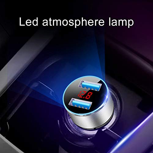 LovePlz Caricabatteria da Auto, Display A LED Caricabatteria A Ricarica Rapida per Telefono Cellulare con Doppio USB 3.1A per Veicoli da Auto Universale Argento