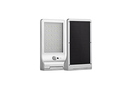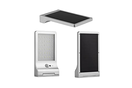 LED LOVERS Faretto LED da Esterno, Faretto Argento con Sensore di Movimento, Faro a Energia Solare Ultra Sottile, Luce di Sicurezza e Antifurto a Batteria