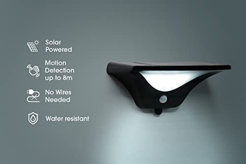 LED LOVERS Luce di Sicurezza Solare con Sensore di Movimento PIR, Lampada da parete LED per esterni, 4.6W e 130 Lm, Impermeabile, Wireless, per portico esterno, garage, giardino, Nero