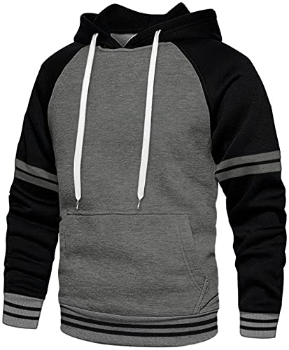 Loveternal Felpa Uomo Pullover Felpe Felpa con Cappuccio Manica Lunga con Coulisse Tops Patchwork Casual con Tasche a Canguro
