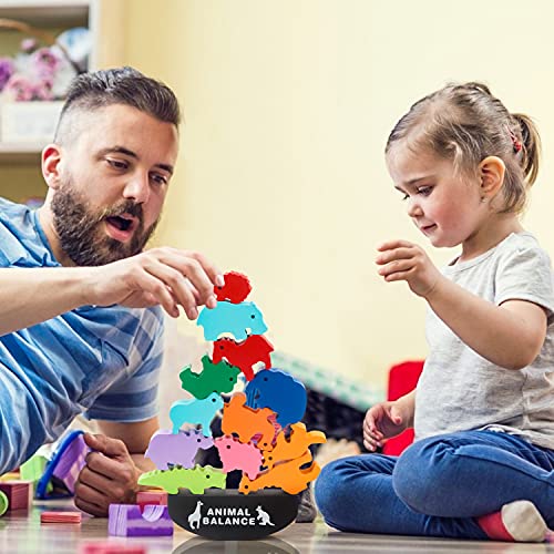 LOVEXIU Gioco di Impilamento in Legno, Blocchi Impilabili Legno, Montessori Giochi Educativi, Animali Giochi Equilibrio, Giocattoli Educativi per Compleanno per Bambini(Animali)
