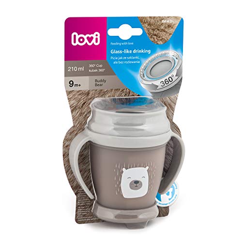 LOVI Tazza per Bambini 360 Buddy Bear Mini | Bicchiere Bambino 9+ Mesi | 210 ml | Protezione Antibatterica SteriTouch | Maniglie Profilate | Antigoccia Sistema di Tenuta | Senza BPA | Grigio