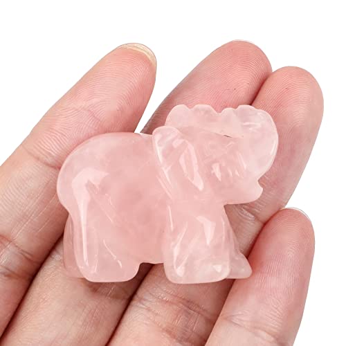 Lovionus89 40 mm intagliato a mano, elefante in cristallo, borsa portafortuna, statuetta di animali in pietra, decorazione per la casa, quarzo rosa