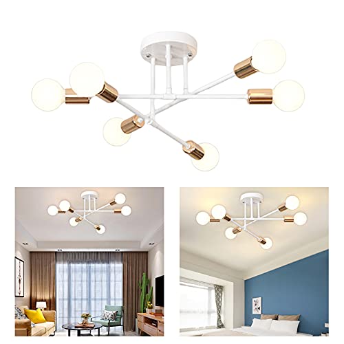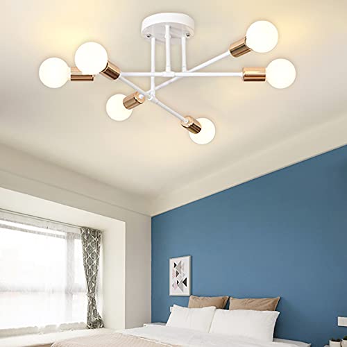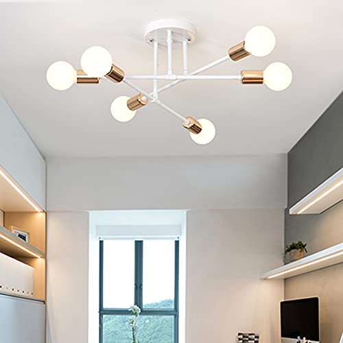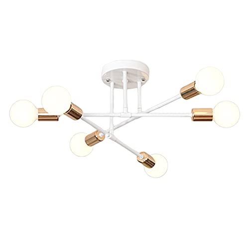LOVIVER Plafoniera moderna Plafoniera -incasso Plafoniera a 6 luci Lampadario Sputnik per soggiorno, Bianco+Oro
