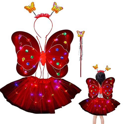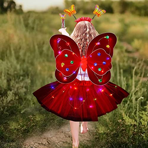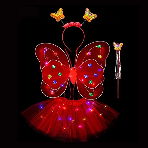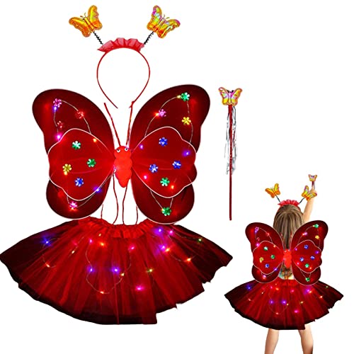 LOVOICE Abito da Fata per Bambini - Le Ragazze Illuminano Il Costume da Fata per Halloween,Le Ragazze di Halloween Vestono Il Costume da Fata della Principessa con Le Ali della Bacchetta Luminosa