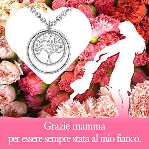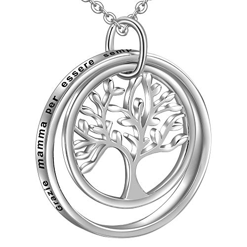 LOVORDS Collana Donna Incisa Argento Sterling 925 Pendente Ciondolo Albero della Vita Famiglia Anello Cerchio Regalo Mamma Madre